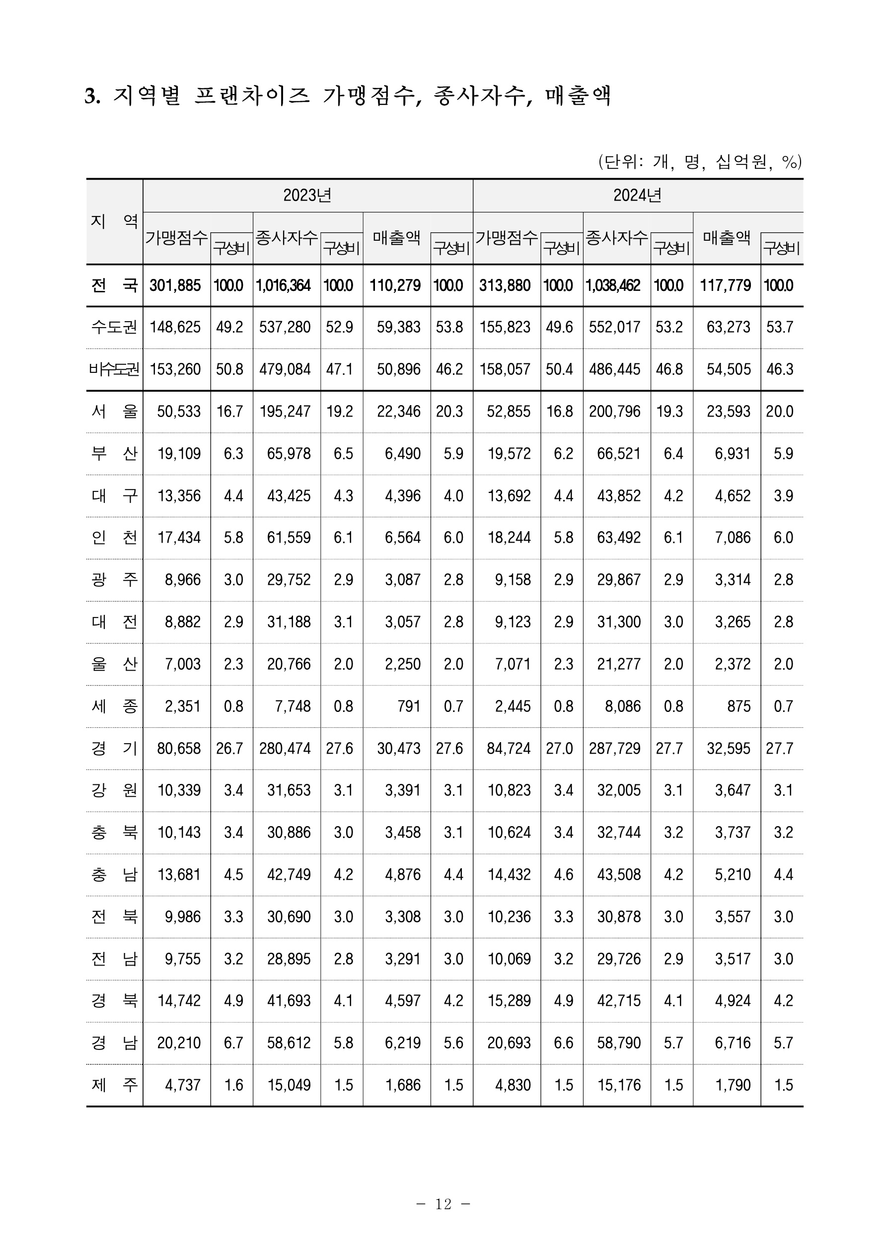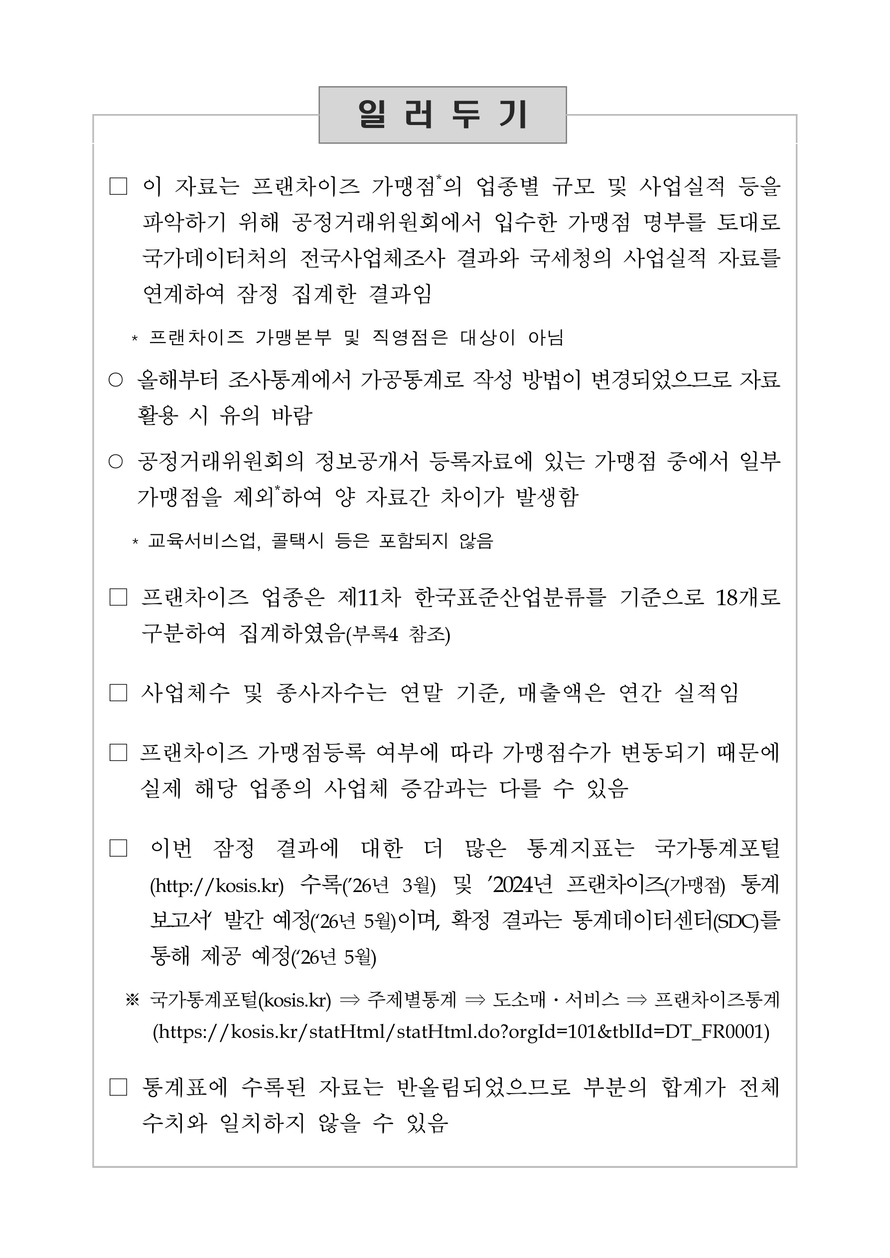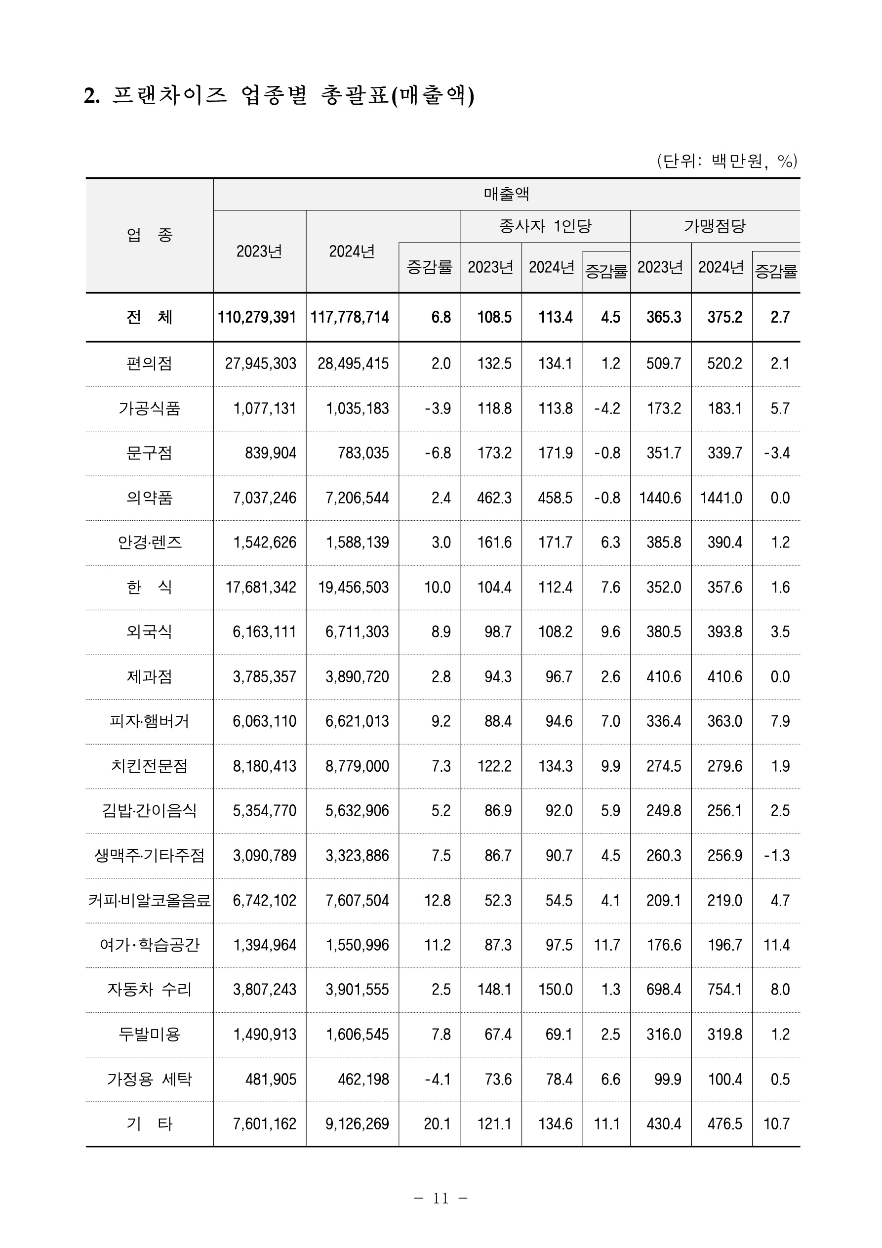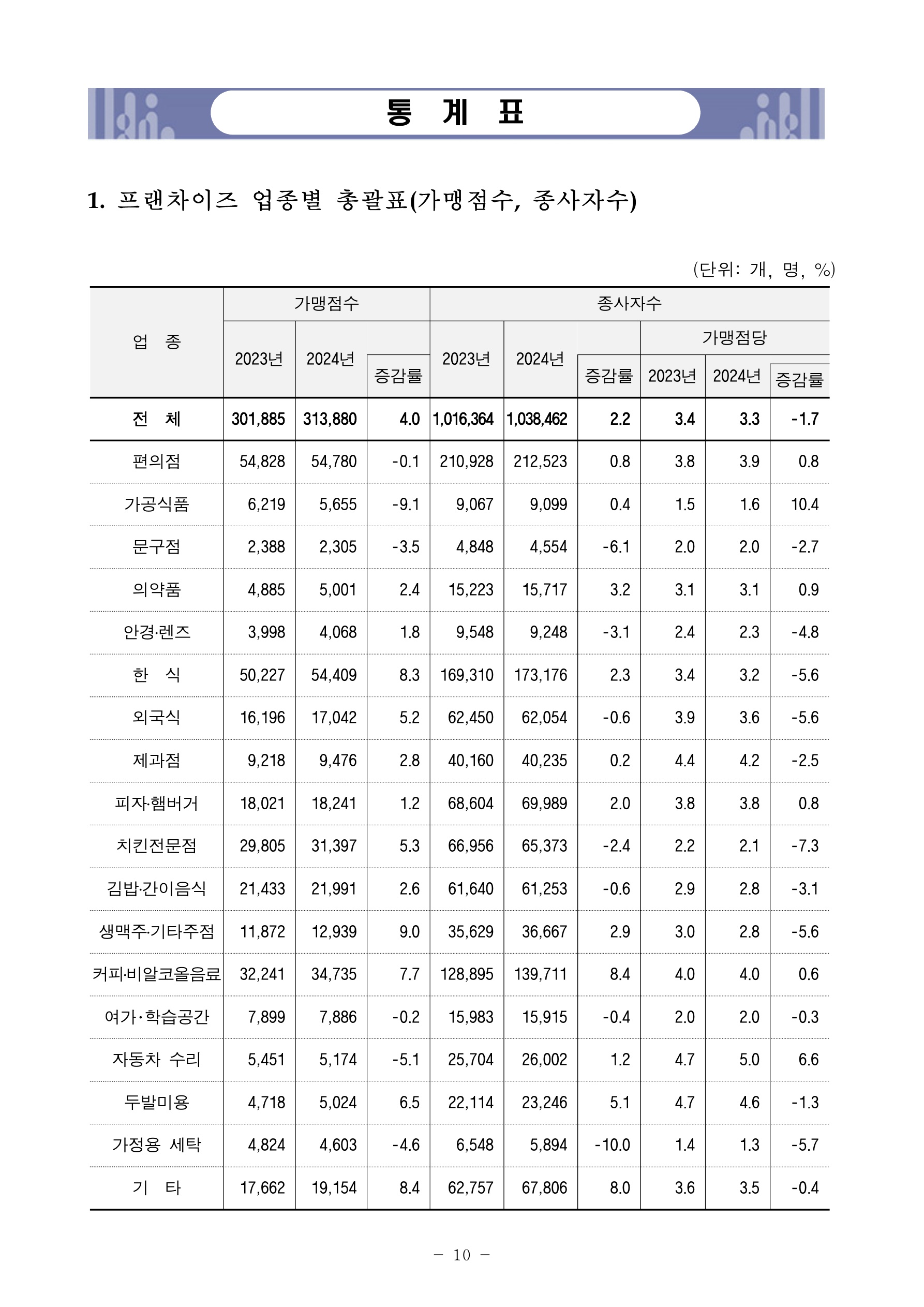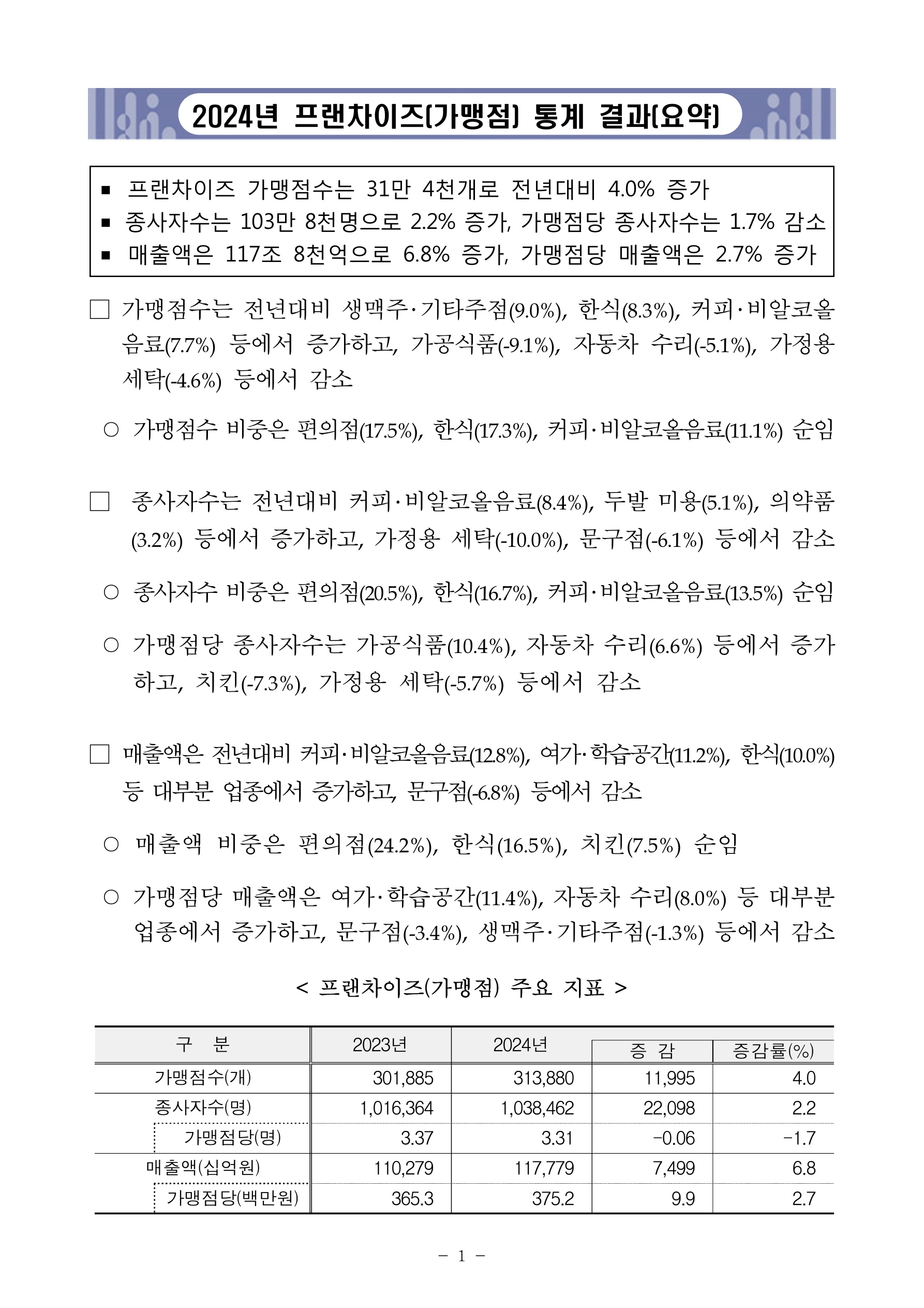 첨부파일 보도자료2024년기준프랜차이즈가맹점통계결과잠정.pdf (2.90 MB)